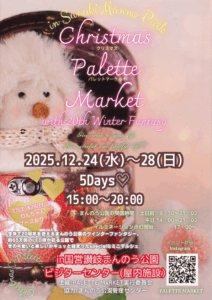 開催日 12/24(水)~12/28(日) 開催時間 15:00~20:00 場所 ビジターセンター 参加費 各ワークショップ、販売品目により異なる