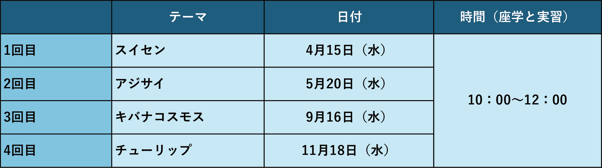 年間4回[4月15日(水)、5月20日(水)、9月16日(水)、11月18日(水)]