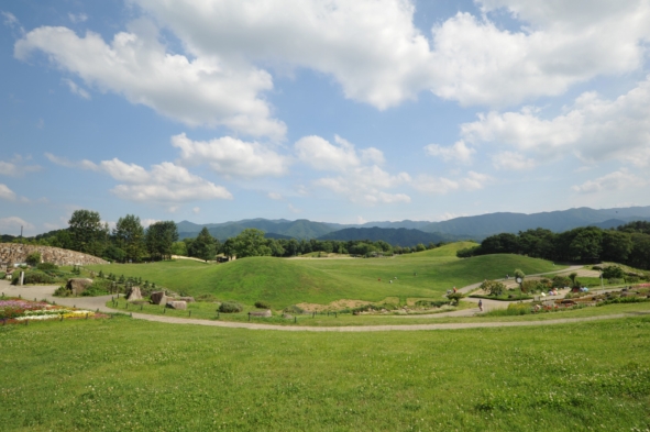 エントランス広場をぐるり囲んだ石垣の入口に、公園案内所があり、スタッフが常駐しています。