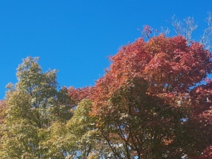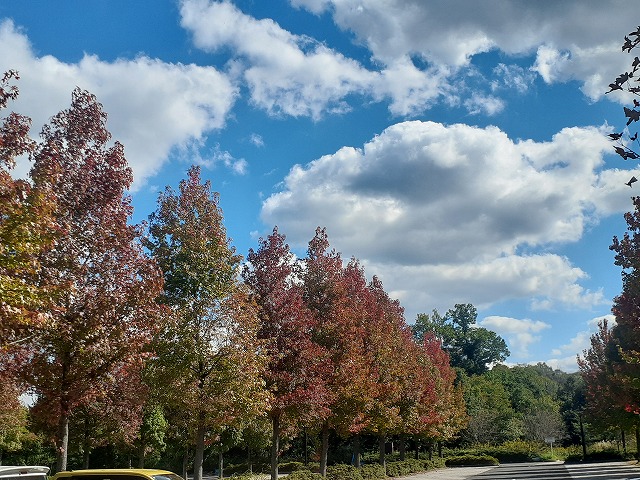 もみじの谷の上段は、イロハモミジが紅葉しています。北駐車場のモミジバフウも紅葉しています。もみじの谷は、北駐車場から徒歩2分でお楽しみいただけます。